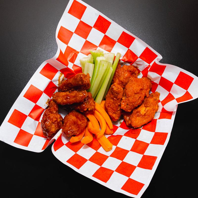Breaded chicken wings. Choose from buffalo, mango habanero, BBQ, spicy honey, Carolina gold BBQ or a lemon pepper dry rub