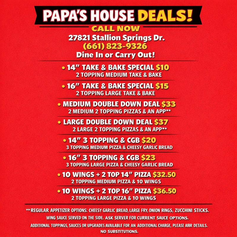 • We offer Take & Bake pizza in 14" & 16" sizes •